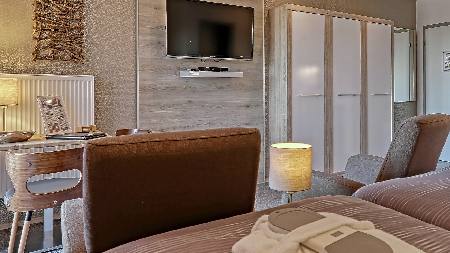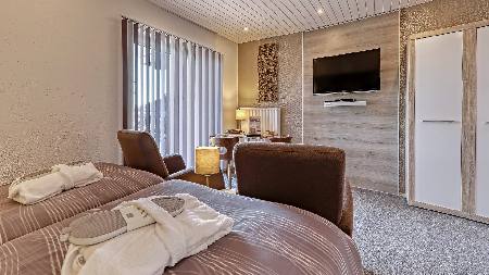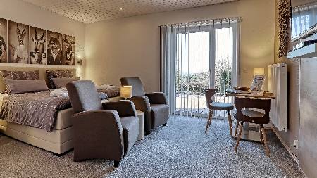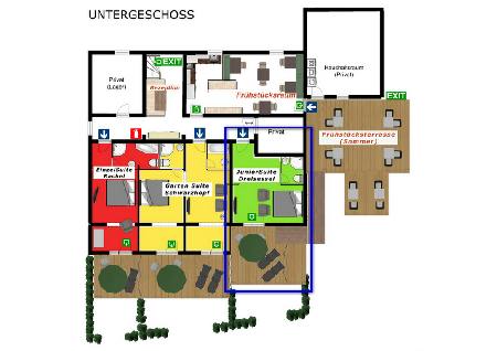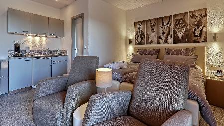 Genießen Sie die geschmackvoll eingerichtete JuniorSuite mit großzügigem Wohnbereich auf ca. 29 m² im Gartengeschoss in ruhiger Ecklage. Die riesige, windgeschützte Terrasse (20 m²) in Südlage lädt ein, die Sonne und die Natur in vollen Zügen zu genießen.