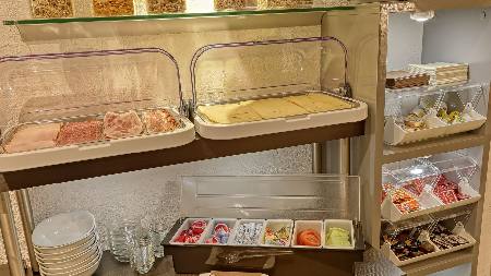 Das (kontinentale) Buffet 'Plus', bietet eine Vielfalt an Brotsorten, Cerealien, Marmeladen, etwas Frischem, Käse, Wurst, Süßigkeiten, gekochte Eier, Omeletten und noch vieles mehr. Dazu gibt es verschiedene Säfte, mehrere Kaffeesorten (inklusive Espresso, Latte Macchiato und Cappuccino!), heiße Schokolade sowie verschiedene Teesorten.