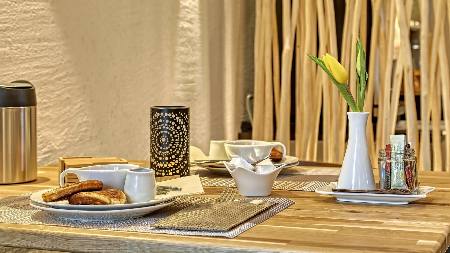 Genau wie das Hotel, ist auch der Frühstücksraum übersichtlich und persönlich. Wir servieren Ihnen jeden Tag eine reichliche Auswahl.